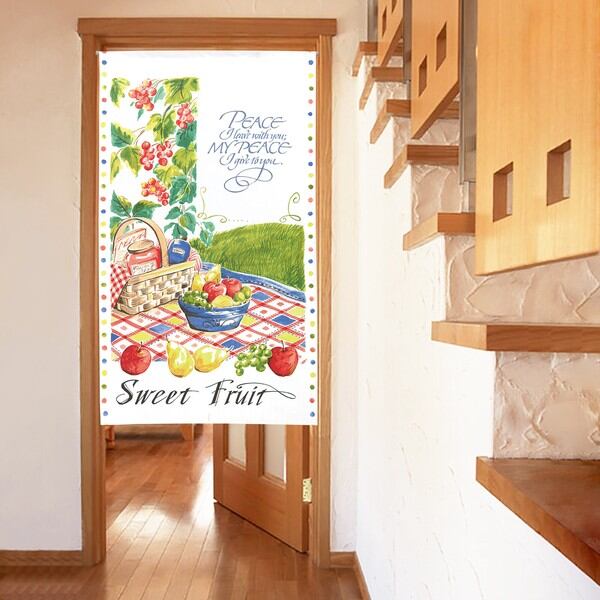 のれん 受注生産 目隠し 「Sweet_Fruit」85x150cm 日本製 洋風 洋柄 / 家具・インテリア ファブリック・敷物