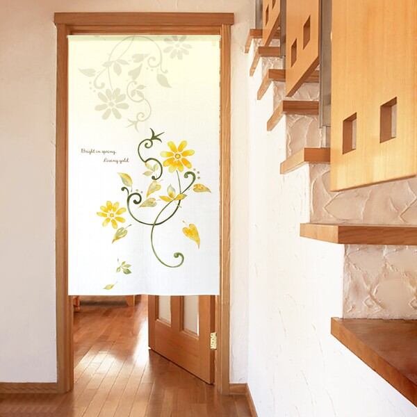のれん 受注生産 目隠し 「Bright_in_spring」85x150cm 日本製 洋風 洋柄 / 家具・インテリア ファブリック・敷物