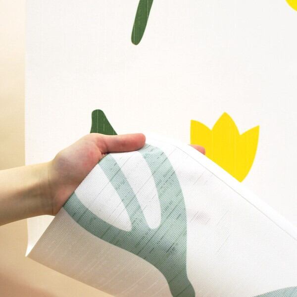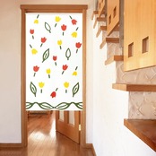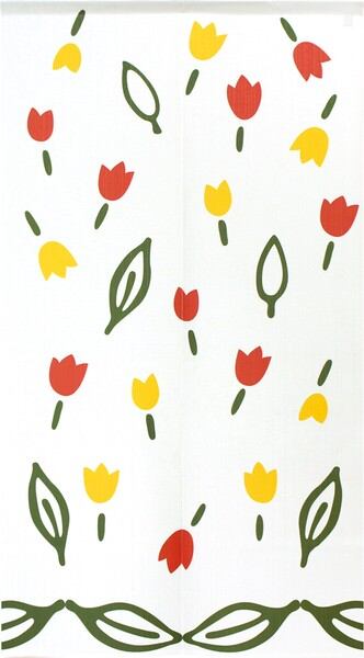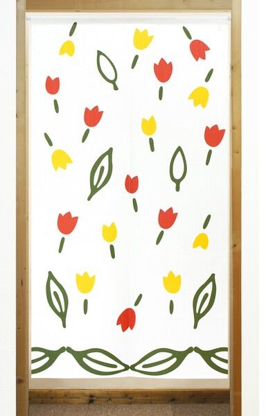 のれん 受注生産 目隠し 「チューリップと葉っぱ」85x150cm 日本製 洋風 洋柄 / 家具・インテリア ファブリック・敷物