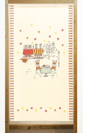 のれん 受注生産 目隠し 「休日のレストラン」85x150cm 日本製 洋風 洋柄 / 家具・インテリア ファブリック・敷物