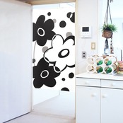 のれん 受注生産 目隠し 「モノクロフラワー」85x150cm 日本製 洋風 洋柄 / 家具・インテリア ファブリック・敷物