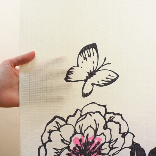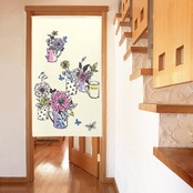 のれん 受注生産 目隠し 「カップフラワー」85x150cm 日本製 洋風 洋柄 / 家具・インテリア ファブリック・敷物