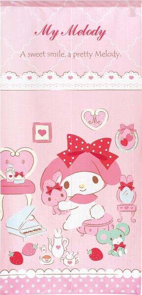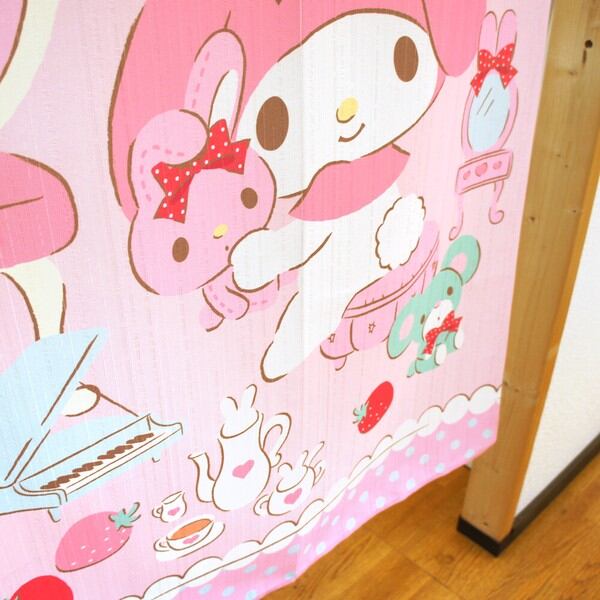 のれん 受注生産 目隠し サンリオ「マイメロディ_いちご色のりぼん」72×150cm 日本製 / 家具・インテリア ファブリック・敷物