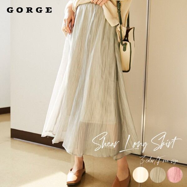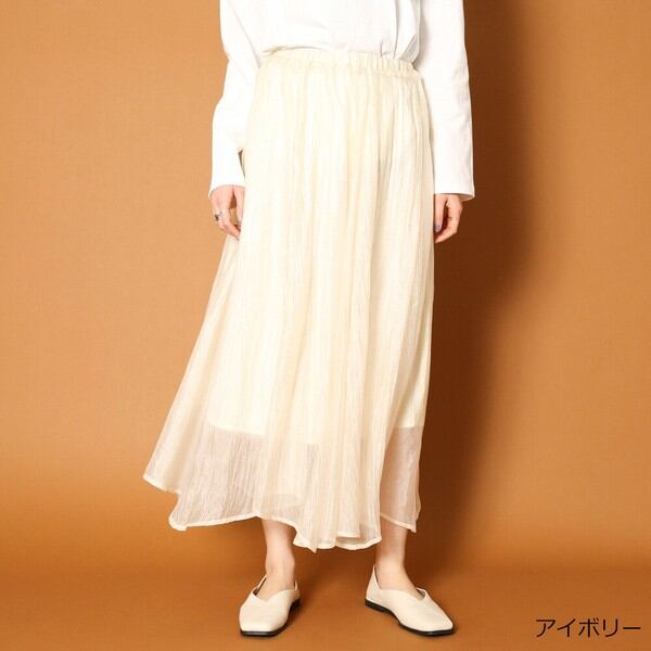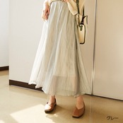 シアー/光沢/シフォン/スカート/ロング/ミディアム/フレア/ゴム/ニュアンスカラー/2111104/