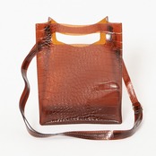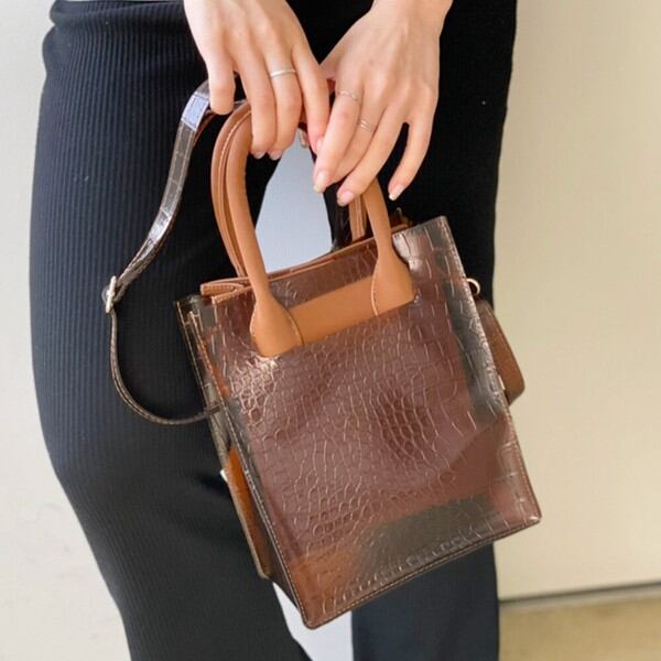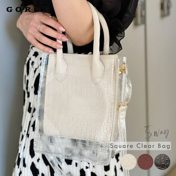 クリア&合皮のドッキングなので気分に合わせてオールシーズン楽しめるのがうれしいポイント♪トレンドのスクエア型でスタイリングに合わせやすいのももちろん、柔らか素材で使い勝手も抜群◎ショルダーもクリアと合皮が両方付いていてコスパ抜群な万能ミニバッグです♪