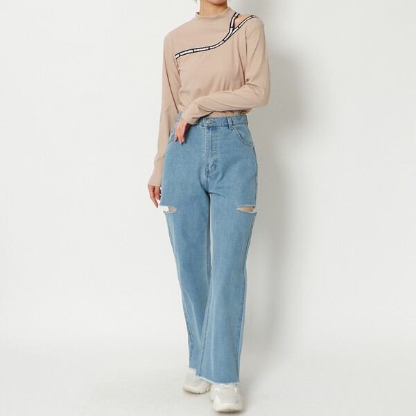 テレコリブカットアウトトップス/s84 / ファッション レディースアパレル Tシャツ・カットソー