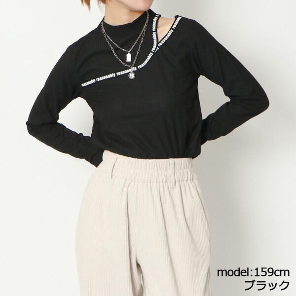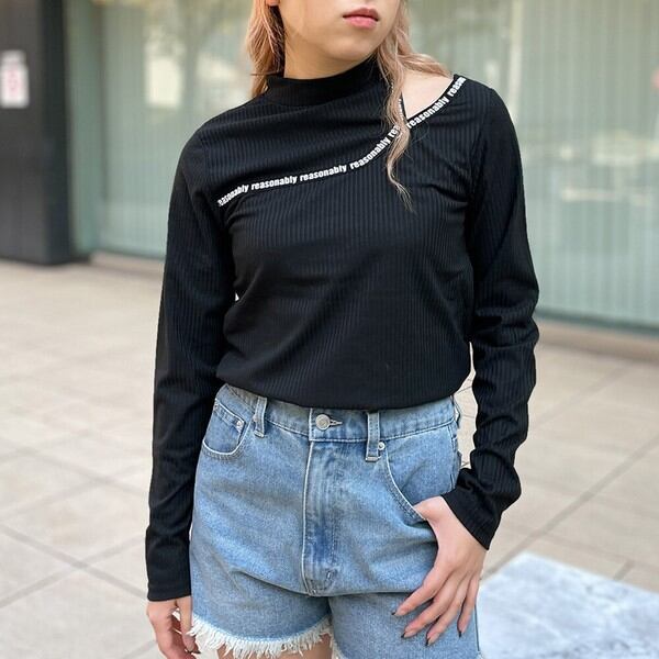 テレコ/リブ/カットアウト/プリント/トップス/ロンT/肩見せ/ストレッチ/伸縮性/英語/2111179/トップス/春/春服/靴/韓国/韓国/個性的/ロンT/スキニー/フレアパンツ/シアー/プチプラ/韓国ファッション/レディース/ファッション/靴/大きいサイズ/厚底/厚底スニーカー/くつ/ストリート/人気/カットソー/タンクトップ/キレイめ/大人/大人カジュアル/お洒落/セクシー/ストリート/バックプリント/肩開き/韓国/通販/人気/黒/