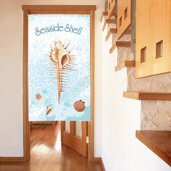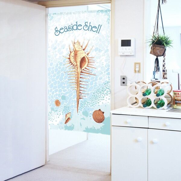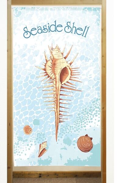 のれん 受注生産 目隠し 「Seaside Shell」85x150cm 日本製 洋風 洋柄 / 家具・インテリア ファブリック・敷物