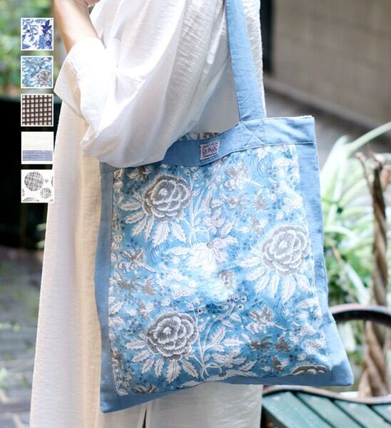 インドの伝統技法ブロックプリントを使った、1点1点表情が異なる風合い豊かなトートバッグです