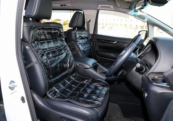 ●柔らかく滑りの良い本革で、優れたクッション性と安定感がスムーズなドライブを助けるカーシートです