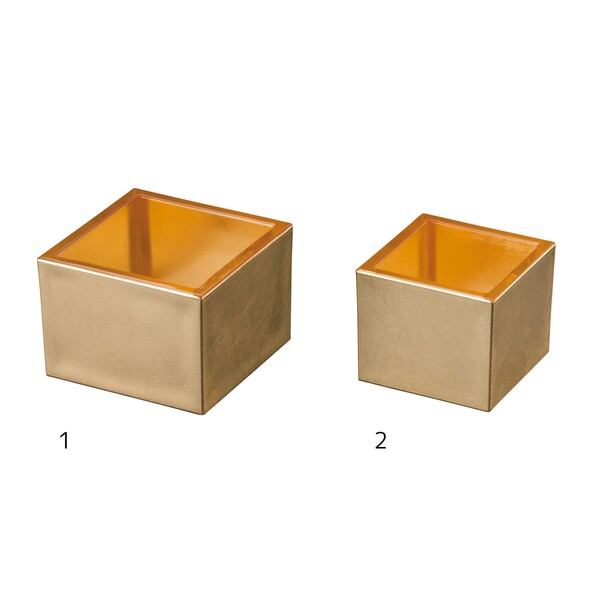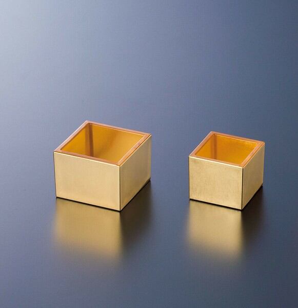 クリア枡の外側に金沢箔を貼り、ウレタン塗装で仕上げています