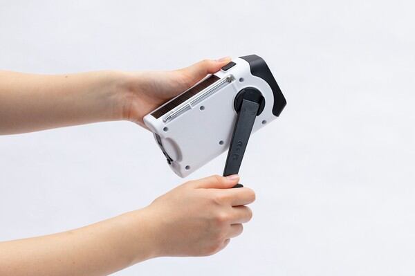※1分間の手回し充電で約10分点灯手回し、ソーラー、USBポートと3つの充電方式で充電できます