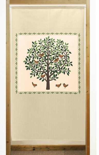 のれん 受注生産 目隠し 「木と鳥」85x150cm 日本製 洋風 洋柄 / 家具・インテリア ファブリック・敷物