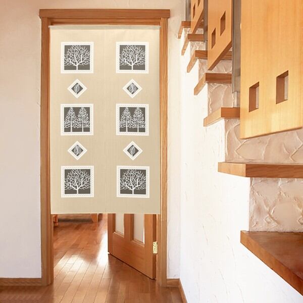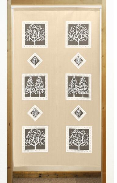 のれん 受注生産 目隠し 「レース調ツリー&リーフ」85x150cm 日本製 洋風 洋柄 / 家具・インテリア ファブリック・敷物