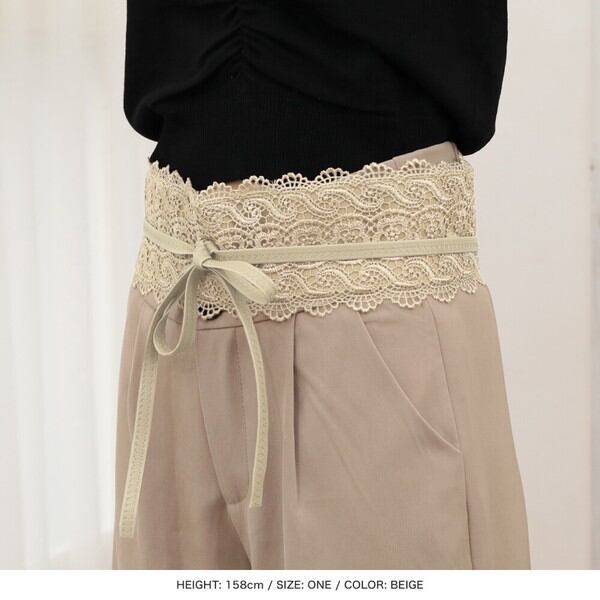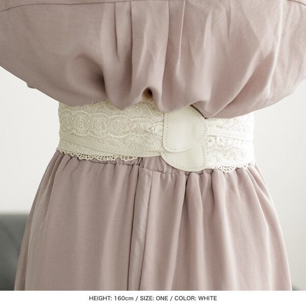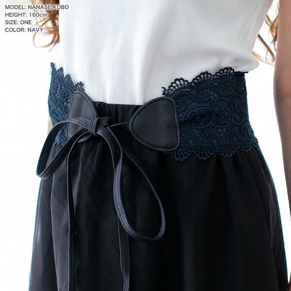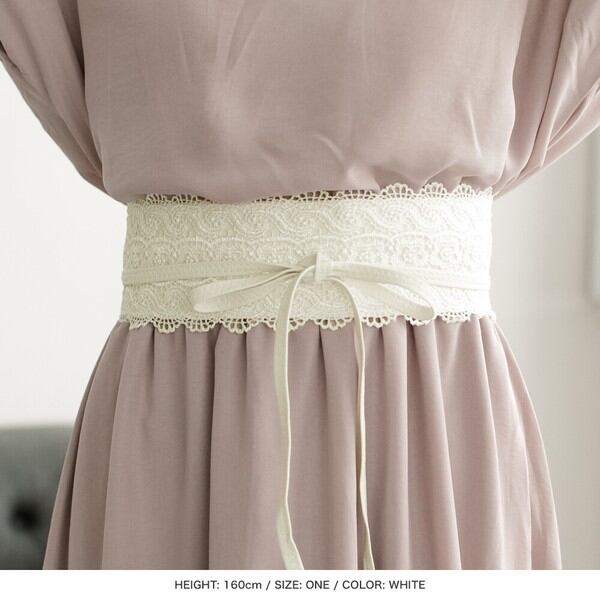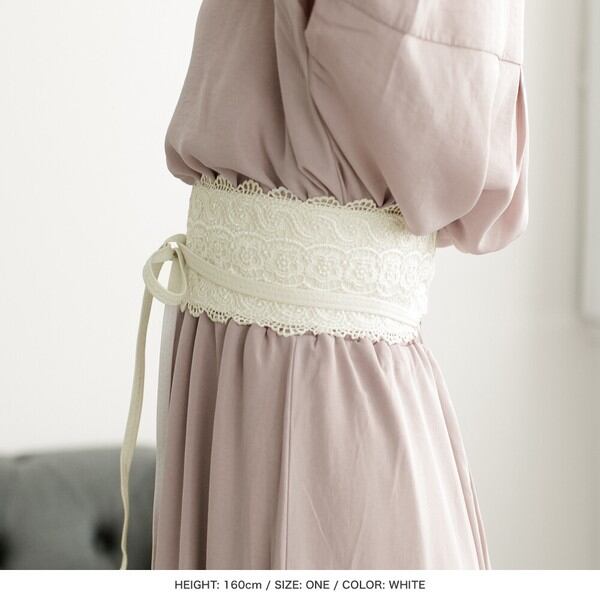 総レースで仕上げた、フェミニンな印象のサッシュベルト。