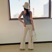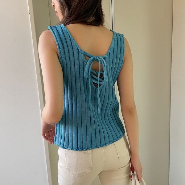 シンプルでヴィンテージ感のある素材が大人っぽく1枚でもバックスタイルでこなれ感を演出できる編み上げタンク♪デザインだけでなくバックスタイルや素材にも手を抜かない大人女子にもおすすめの1枚です◎