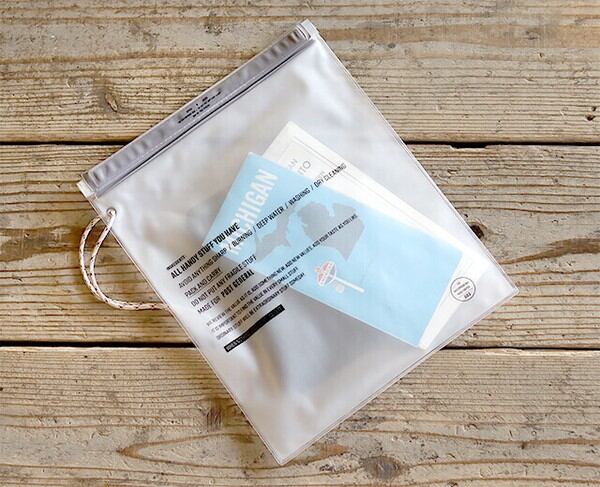 その名の通り、濡らしたくない携帯小物類を水気から守る収納バッグですが、 日々の暮らしや、旅先、外遊びなどさまざまなライフシーンで使える小物収納として提案します