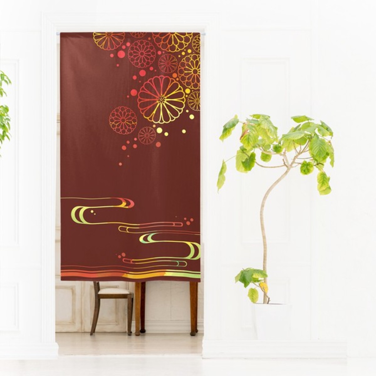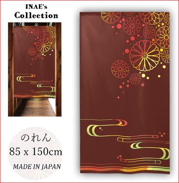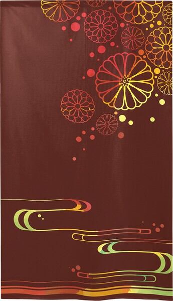 のれん 受注生産 目隠し 「スクラッチ風 流水に菊_RE」 日本製 和柄 和風 / 家具・インテリア ファブリック・敷物