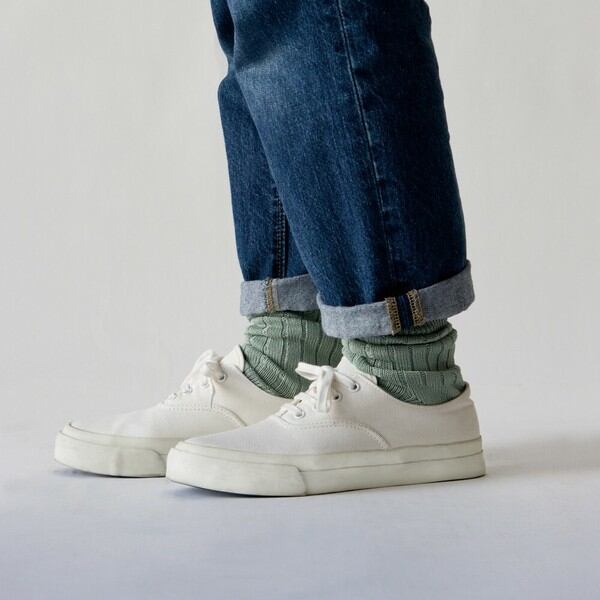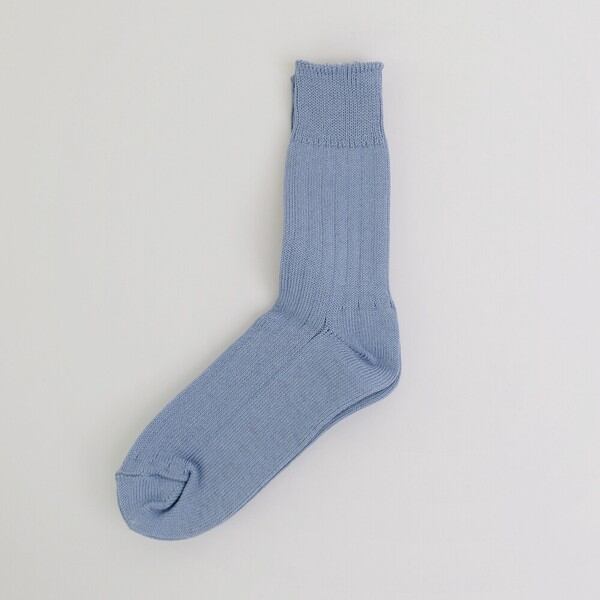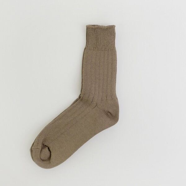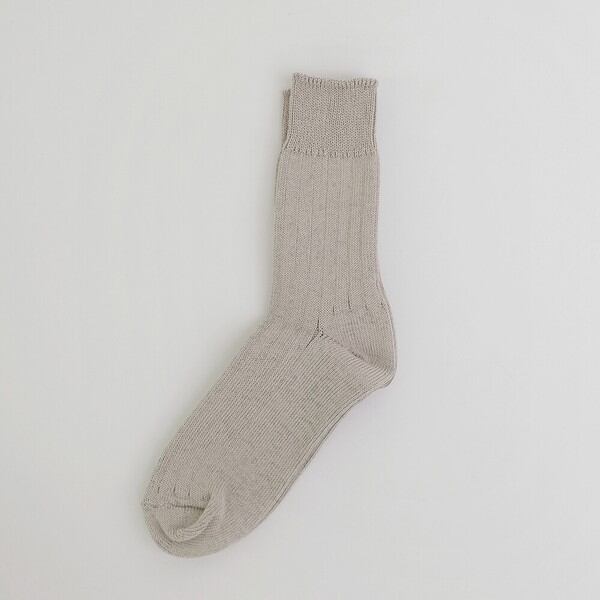 綿100%の糸に特殊加工を施し、麻のようなシャリ感をもたせた靴下