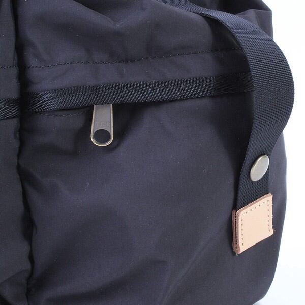 持ち手の革がデザインアクセントになっていて雰囲気があり、シンプルになりがちなコーディネートにすっと厚みを出してくれる鞄です