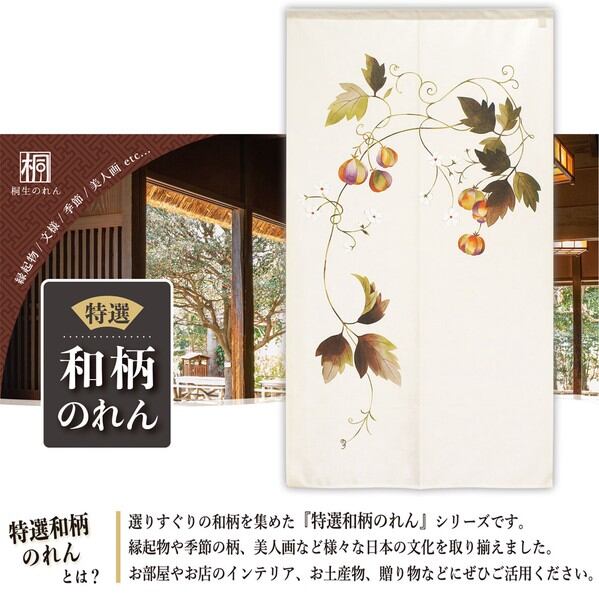 のれん 受注生産 目隠し 85x150cm「フウセンカズラ」 日本製 和柄 和風 / 家具・インテリア ファブリック・敷物