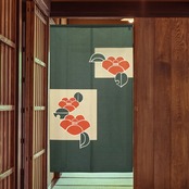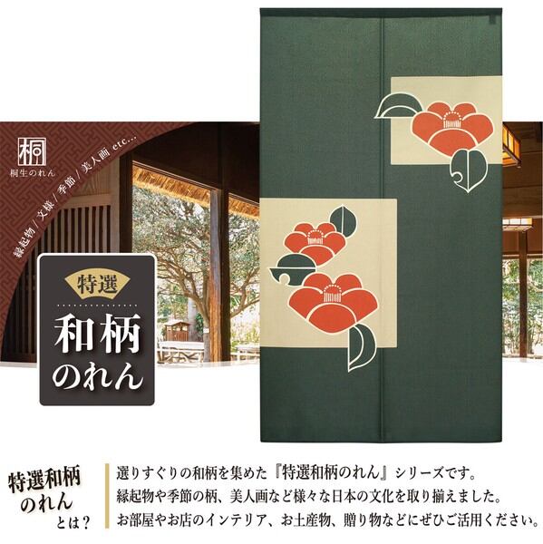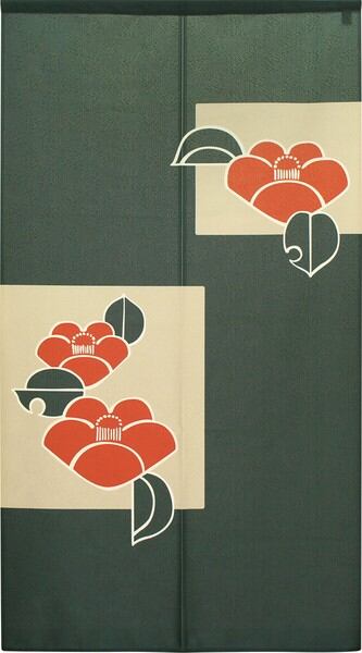 のれん 受注生産 目隠し 85x150cm「角椿」 日本製 和柄 和風 / 家具・インテリア ファブリック・敷物