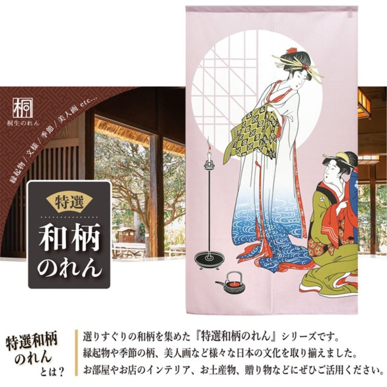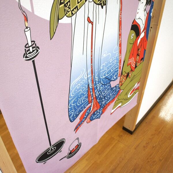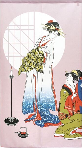 のれん 受注生産 目隠し 85x150cm「美人画 円窓」 日本製 浮世絵 和柄 和風 / 家具・インテリア ファブリック・敷物