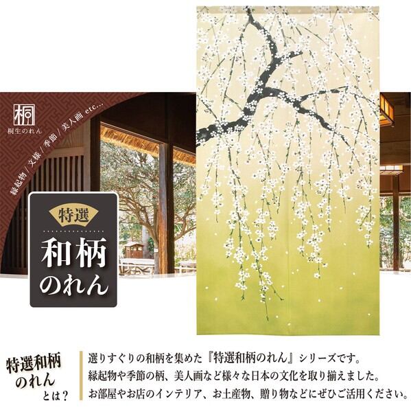 のれん 受注生産 目隠し 85x150cm「しだれ桜 若葉」 日本製 和柄 和風 / 家具・インテリア ファブリック・敷物