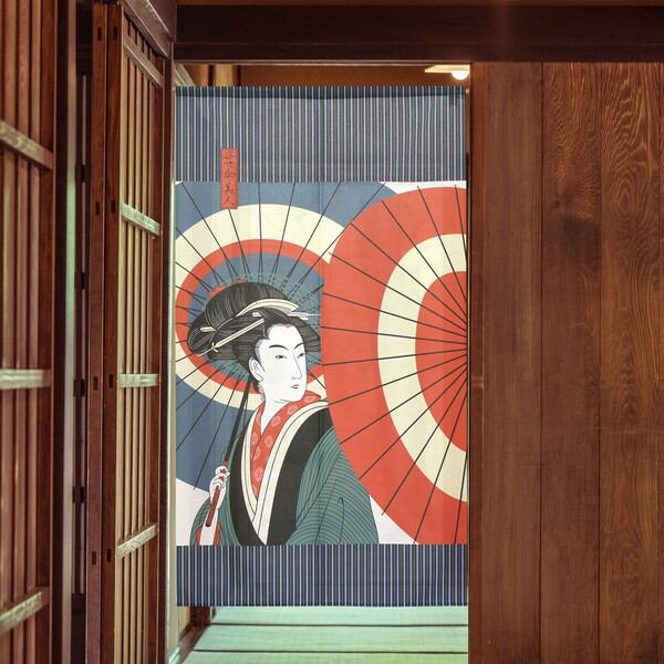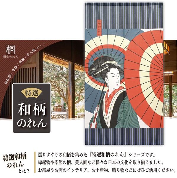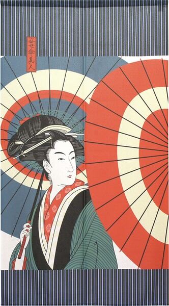 のれん 受注生産 目隠し 85x150cm「美人画 蛇の目傘」 日本製 浮世絵 和柄 和風 / 家具・インテリア ファブリック・敷物