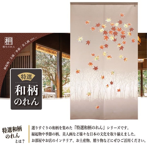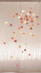 のれん 受注生産 目隠し 85x150cm「冬木に紅葉」 日本製 和柄 和風 / 家具・インテリア ファブリック・敷物