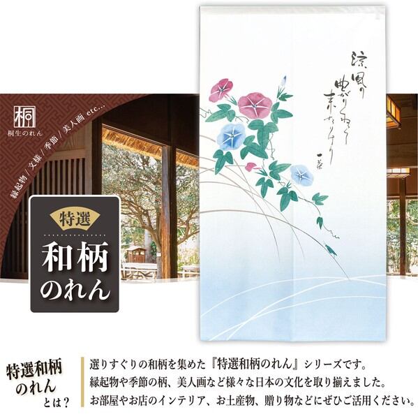 のれん 受注生産 目隠し 85x150cm「涼風朝顔」 日本製 和柄 和風 / 家具・インテリア ファブリック・敷物