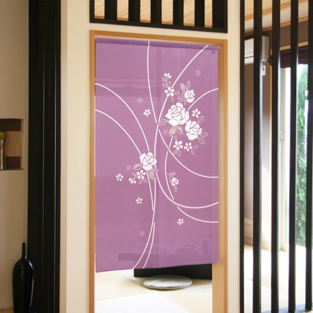 のれん 受注生産 目隠し 85x150cm「曲がり薔薇」 日本製 和柄 和風 / 家具・インテリア ファブリック・敷物