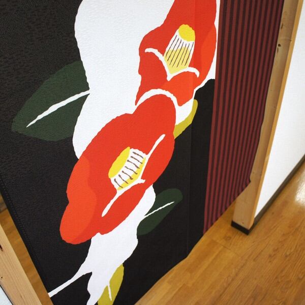 のれん 受注生産 目隠し 85x150cm「雪椿」 日本製 和柄 和風 / 家具・インテリア ファブリック・敷物