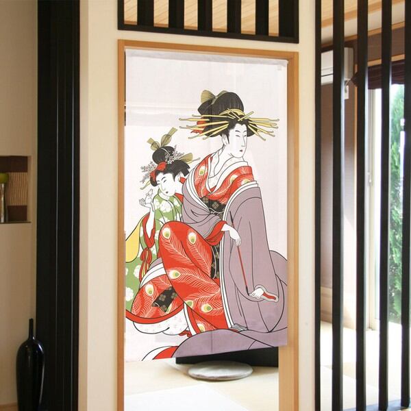 のれん 受注生産 目隠し 85x150cm「美人画 二人」 日本製 浮世絵 和柄 和風 / 家具・インテリア ファブリック・敷物