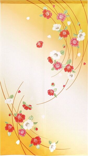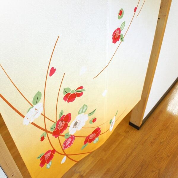 のれん 受注生産 目隠し 85x150cm「曲がり椿」 日本製 和柄 和風 / 家具・インテリア ファブリック・敷物