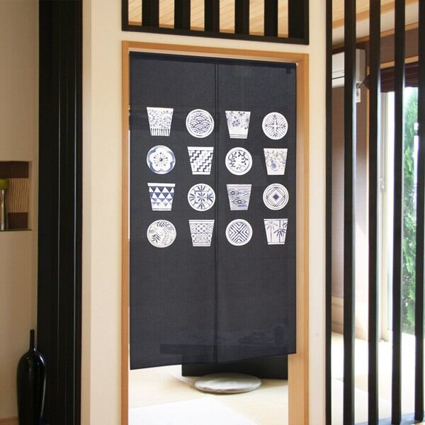 のれん 受注生産 目隠し 85x150cm「和食器」 日本製 和柄 和風 / 家具・インテリア ファブリック・敷物