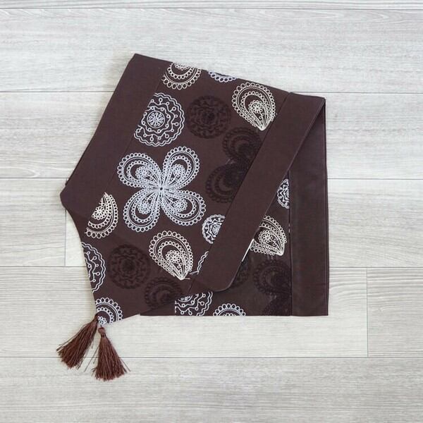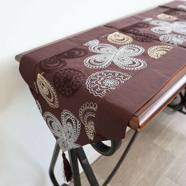 ブラウン基調に光沢のかかったとてもエレガントなテーブルランナーです