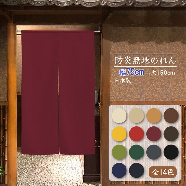 細巾のれん 目隠し 75X150cm「防炎プレーン 全14色」 日本製 消防 防災 店舗 施設 向け / 家具・インテリア ファブリック・敷物