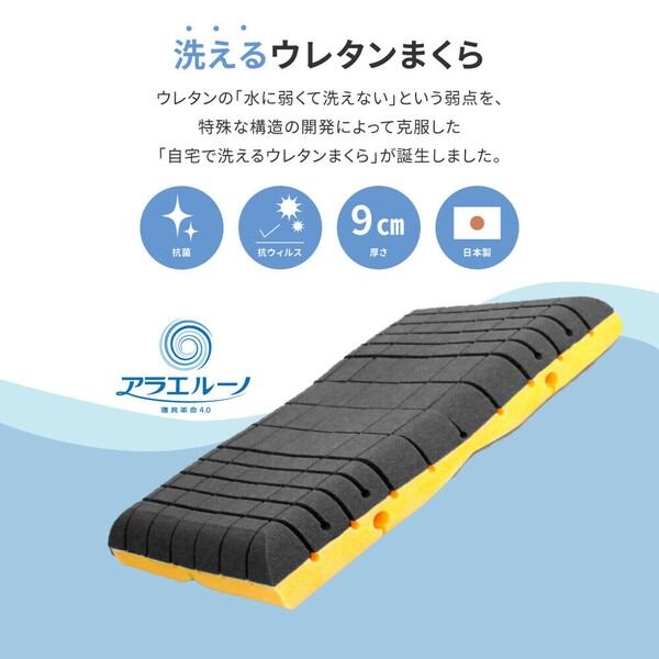 日本の寝具に革命を 洗えるウレタン枕 厚さ9cm カバー付き 日本製 「アラエルーノ」 / 家具・インテリア