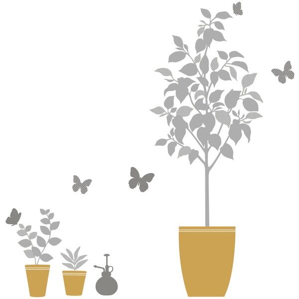 ウォールステッカー 壁紙 シール はがせる デコレーション 大判・1m・フチなし・転写 「霧吹きと植物/グレー」おしゃれ/インテリア/植物/蝶々 / 家具・インテリア インテリア雑貨 壁面装飾