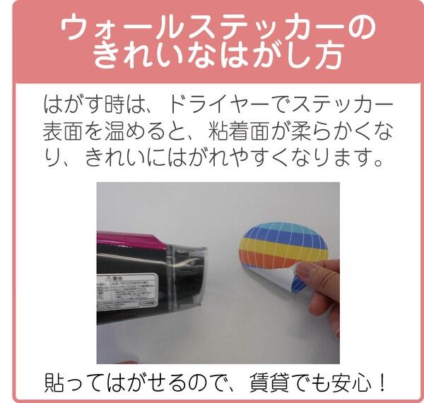 はがす時はドライヤーで温めながらはがすと綺麗にはがれて賃貸でも安心です