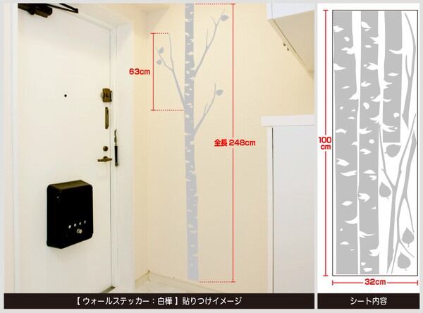 ウォールステッカー 壁紙 シール はがせる デコレーション 大判・1m・フチなし・転写 「白樺/グレー」おしゃれ/インテリア/植物/木 / 家具・インテリア インテリア雑貨 壁面装飾