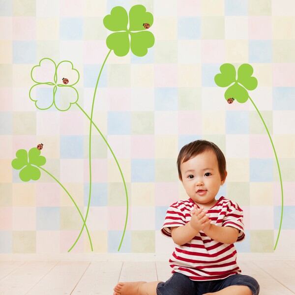 ウォールステッカー 壁紙 シール はがせる デコレーション 大判・1m・フチなし・転写 「四葉のクローバー/ライトグリーン」おしゃれ/植物 / 家具・インテリア インテリア雑貨 壁面装飾