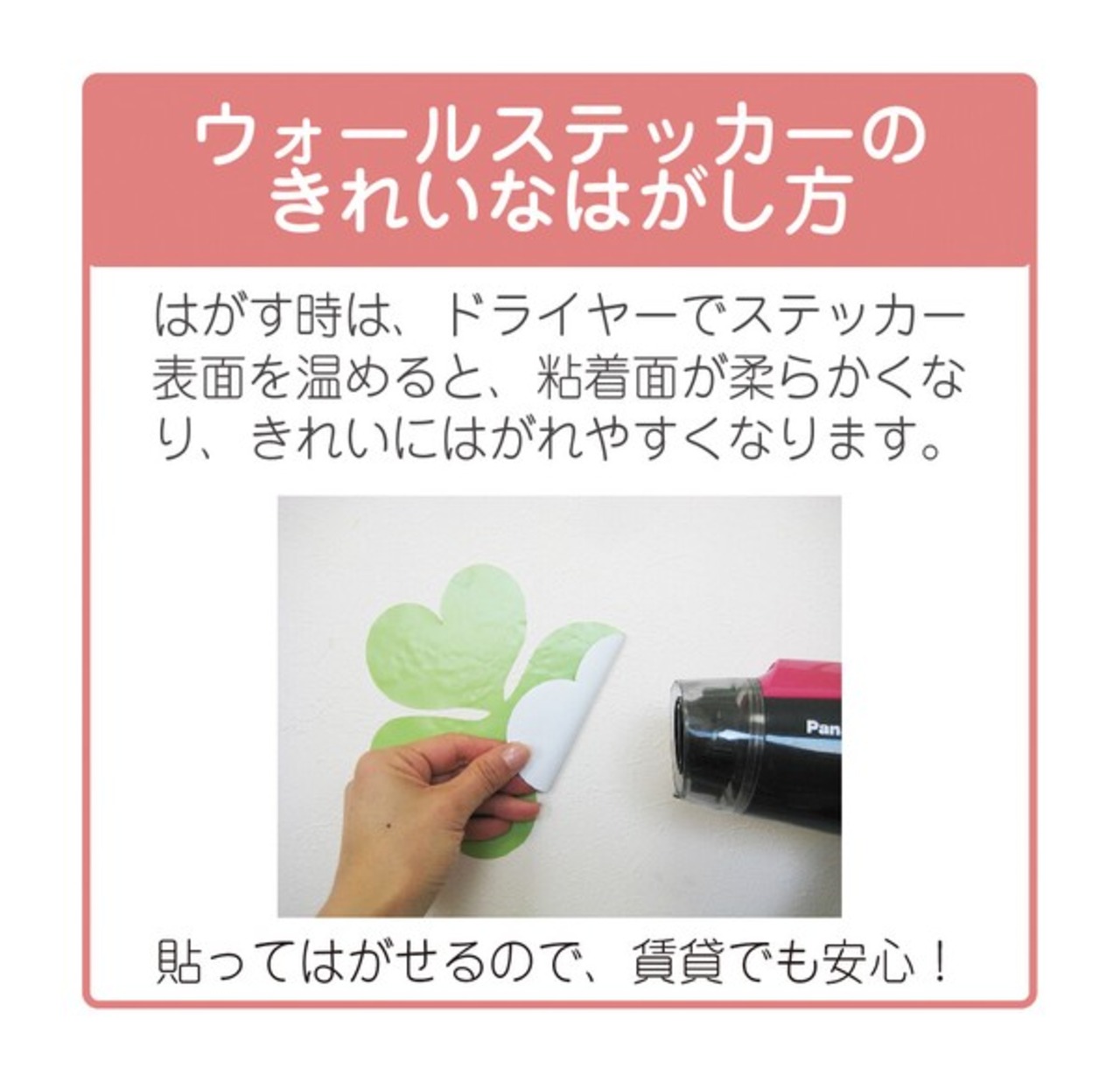はがす時はドライヤーで温めながらはがすと綺麗にはがれて賃貸でも安心です