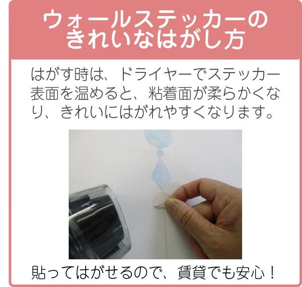 はがす時はドライヤーで温めながらはがすと綺麗にはがれて賃貸でも安心です