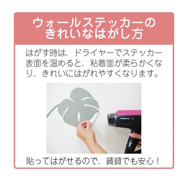 はがす時はドライヤーで温めながらはがすと綺麗にはがれて賃貸でも安心です