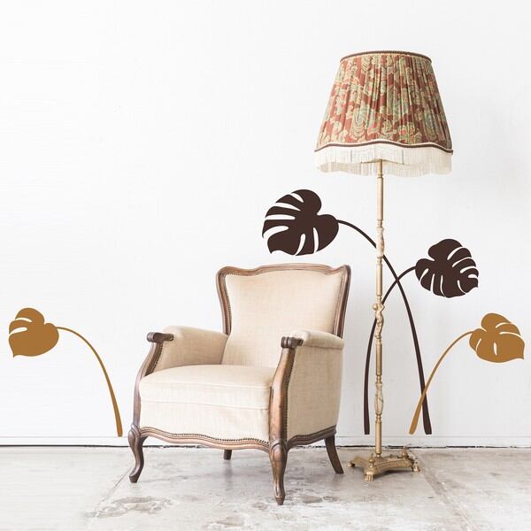 ウォールステッカー 壁紙 シール はがせる デコレーション 大判・1m・フチなし・転写 「モンステラ/ブラウン」おしゃれ/インテリア/植物 / 家具・インテリア インテリア雑貨 壁面装飾