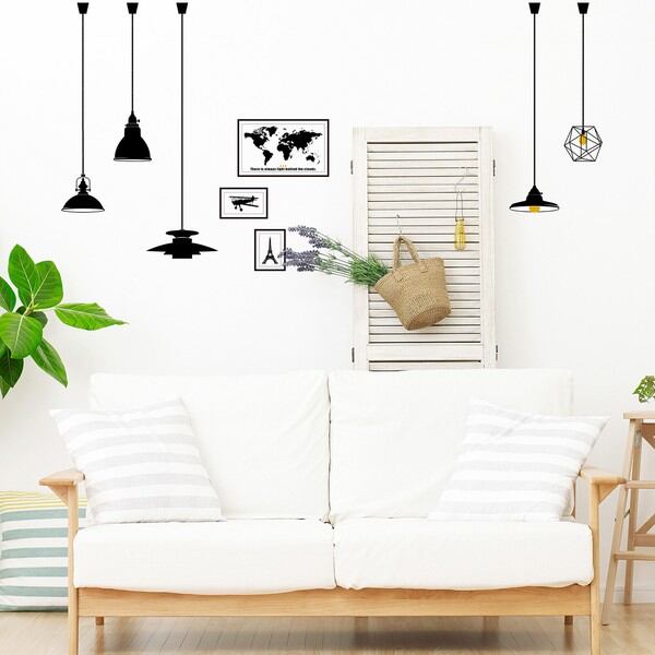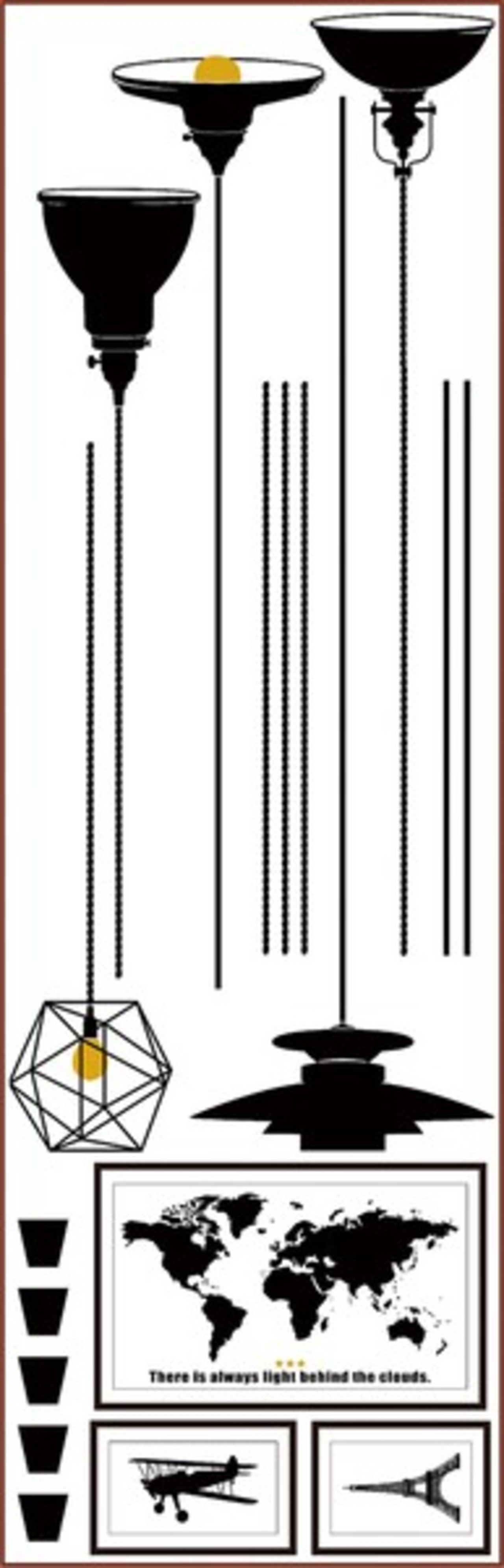 シルエットがおしゃれなダウンライトのウォールステッカーは、寝室や書斎、にはもちろんですが、リビングや玄関、トイレやキッチンの壁などにピッタリです