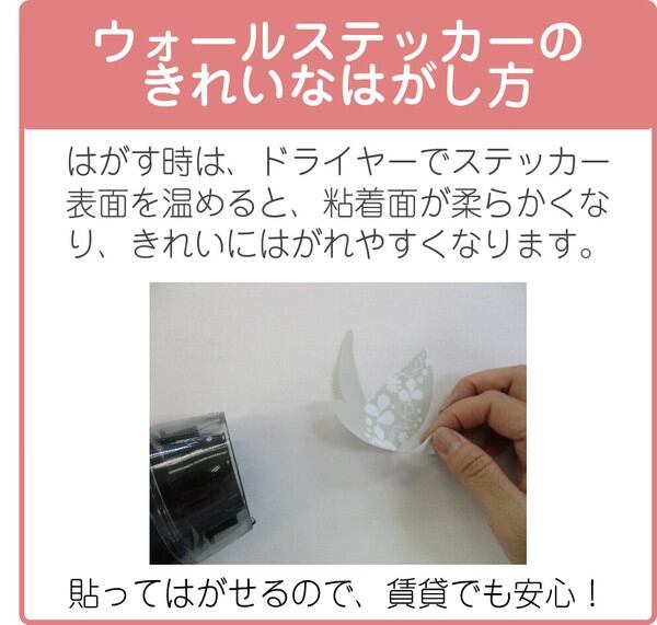 はがす時はドライヤーで温めながらはがすと綺麗にはがれて賃貸でも安心です