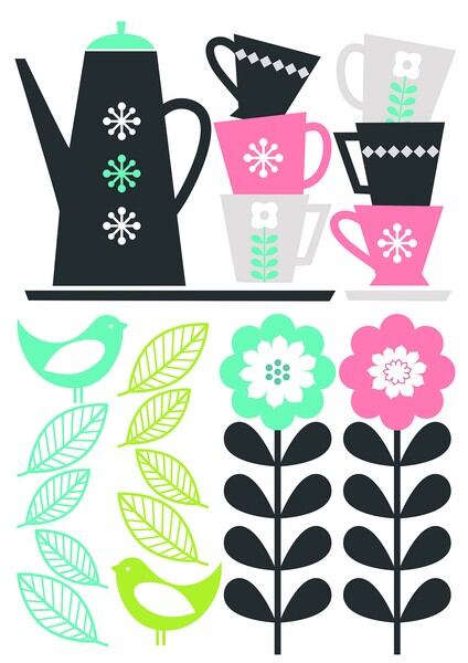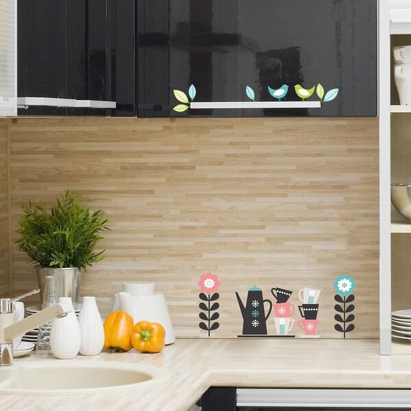 ウォールステッカー 壁紙 シール はがせる デコレーション A4・フチなし・転写 「北欧キッチン」おしゃれ/インテリア/キッチン/北欧風/花/鳥 / 家具・インテリア インテリア雑貨 壁面装飾